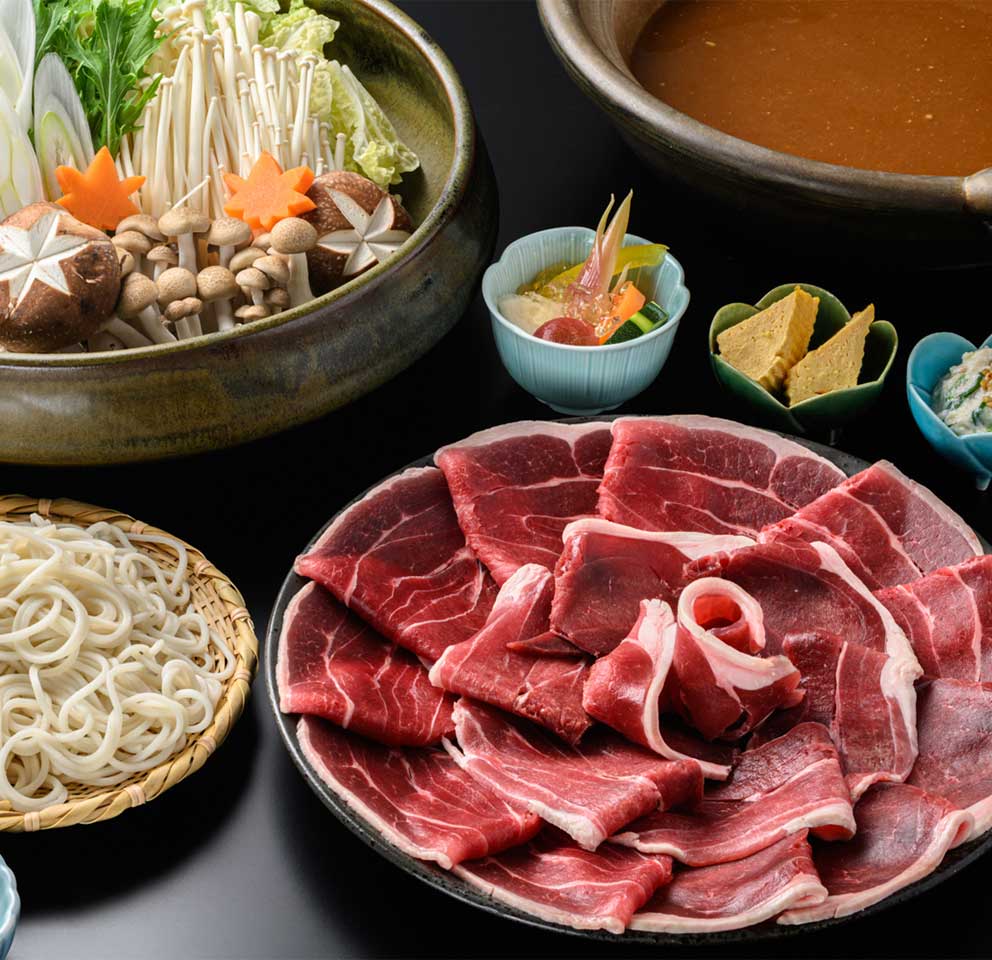 こだわりの更科そば、近又監修のぼたん鍋のほか